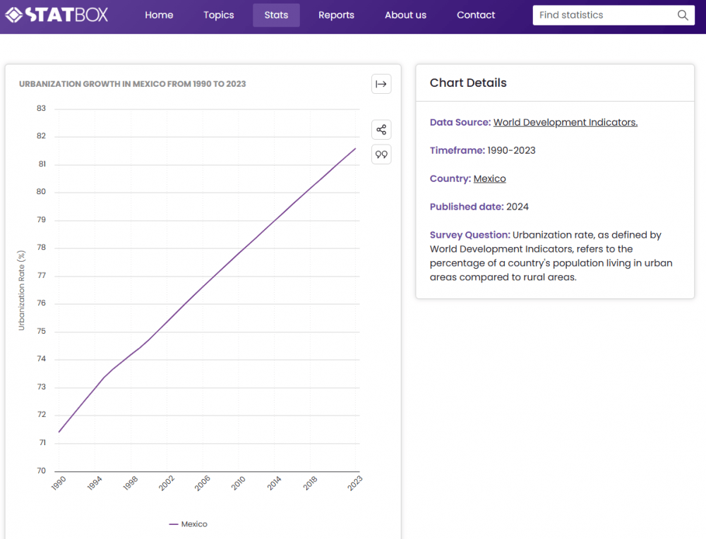 在过去二十年间,墨西哥城市化进程持续深化,城市人口占比从1990年的71.4%稳步提升至2023年的81.6%,近十年年均增速保持0.5%以上。大量农村人口向墨西哥城、瓜达拉哈拉等核心城市聚集,催生了以公寓和小户型为主的住宅需求。居住空间的集约化,推动家居产品向空间高效利用、多功能集成方向升级,嵌入式收纳、折叠家具等品类需求激增。