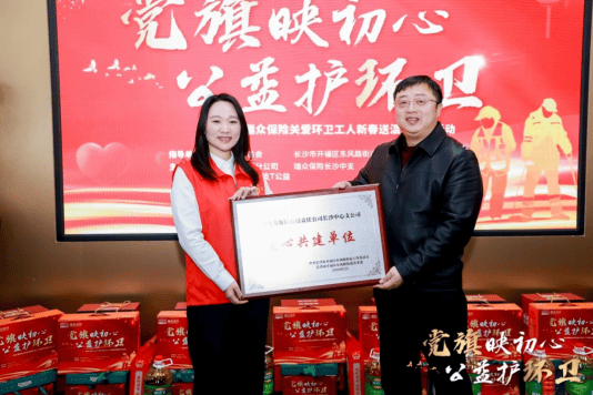 本次活动的亮点之一,是“爱心驿站”的正式揭牌。在湖南省慈善总会及相关政府部门、瑞众保险多方领导的共同见证下,设立于瑞众保险职场内的“爱心驿站”宣布启用。该驿站将全年面向环卫工人开放,免费提供饮水、热饭、歇脚、充电、应急药品等贴心服务,将一次性的节日慰问升华为常态化的温暖守护。环卫工人所在的环卫中心与街道现场授予瑞众保险“爱心伙伴单位”与“爱心共建单位”荣誉牌匾,这份荣誉既是认可更是责任,瑞众保险将持续以实际行动深化公益共建,为一线环卫工人筑牢暖心保障。