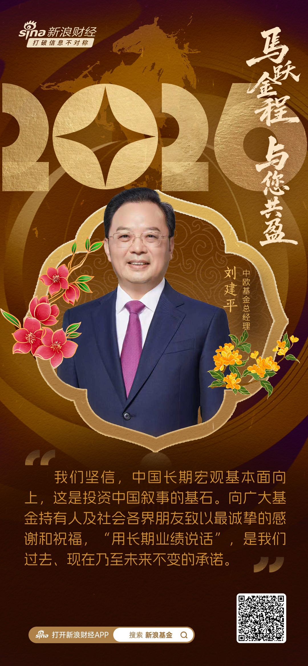 编者按:辞旧迎新,金马贺岁。值此新春佳节,新浪财经特邀公私募领域数十位领军人物,通过镜头与文字,为投资者送来马年新春祝福。信心如磐,笃行致远。愿这一声声真挚寄语,伴您策马扬鞭,共赴投资长路。