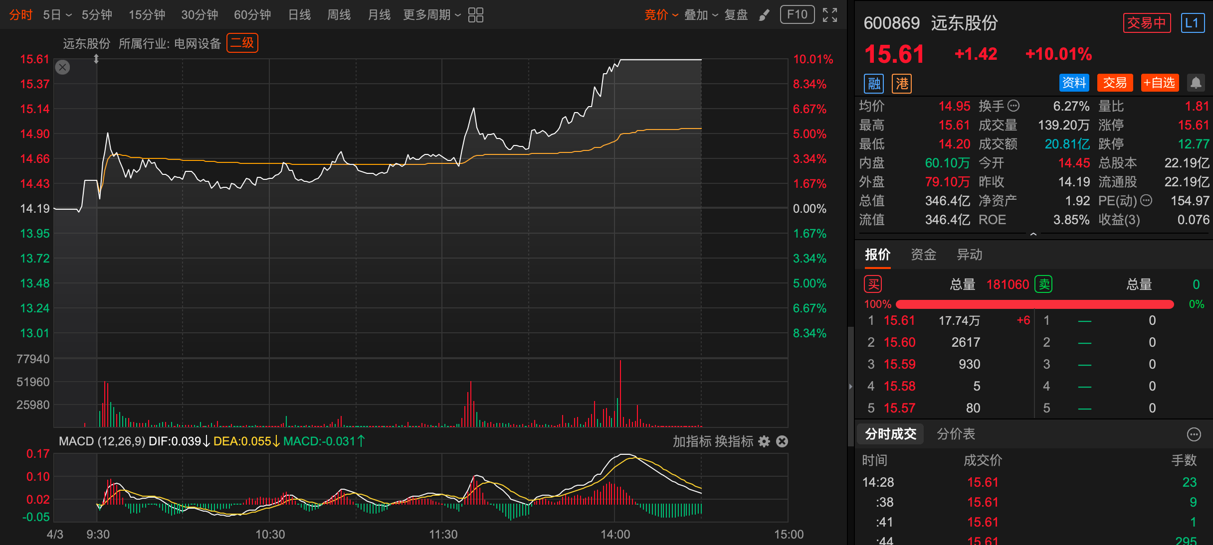 远东股份涨停 公司获得约2320万元AIDC用光纤订单