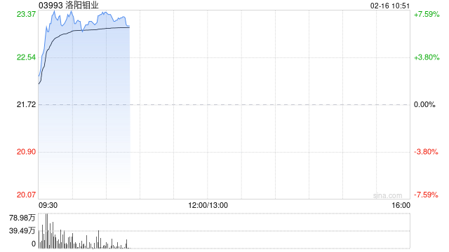 有色金属股早盘涨幅居前 洛阳钼业涨近7%山东黄金涨近6%