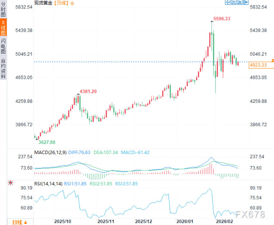 受俄乌地缘政治风险仍存影响,周三欧市时段,现货黄金震荡走强,现交投于每盎司4920美元附近,日内涨幅约0.85%。