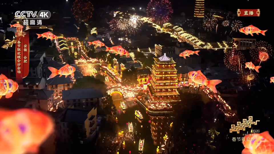 美术设定环节,智象未来充分发挥图片生成模型在语义理解、审美判断与复杂场景建构方面的优势,聚焦合肥分会场“徽派文脉+科创兴邦”的核心调性,对晚会创新场景、关键画面元素及美术风格进行精细化设计,将鱼灯、福马、百戏入皖、夸父逐日等元素通过AI技术进行艺术化呈现,确保了视觉语言与节目主题、视觉调性的高度统一,让徽派人文底蕴通过科技手段得到更生动的传递。
