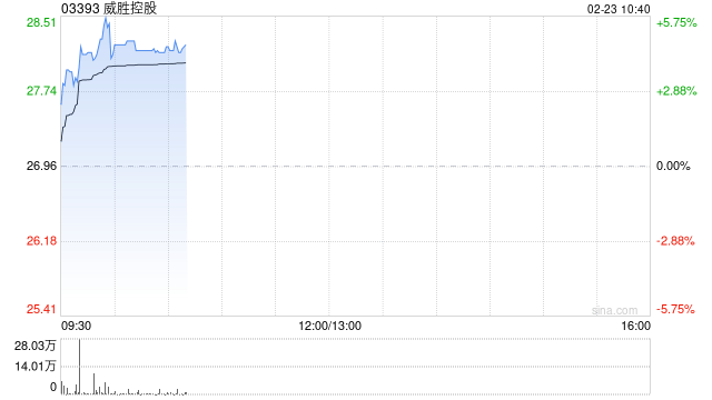 威胜控股(03393)盘初涨超5%,截至发稿,股价上涨4.38%,现报28.14港元,成交额2883.08万港元。