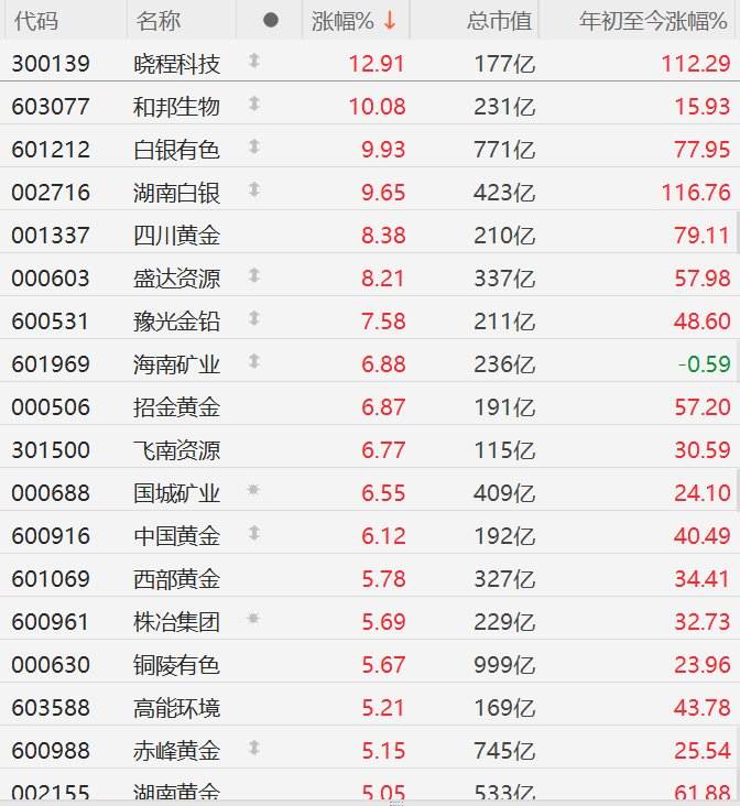 A股异动丨金银价上涨刺激黄金概念股走强,白银有色、湖南白银逼近涨停