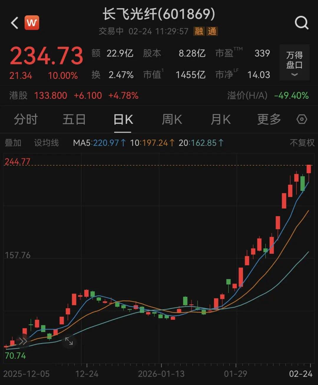 A股市场今天上午整体上行,主要指数不同程度上涨。盘面上,石油石化板块大涨,板块内个股掀起涨停潮。另外,通信板块走势强劲,长飞光纤(601869)(601869)涨停,股价再创历史新高;“易中天”再度大涨,其中天孚通信(300394)大涨近14%,股价亦创历史新高。