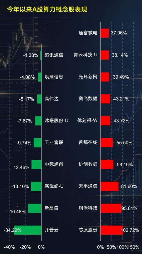 这一数据反映到A股市场,万得AI算力概念指数(8841678.WI)自2026年1月1日至2月28日累计上涨18.08%,换手率达136.07%,成交额达5.26万亿元,成交量超905亿股,表现显著强于市场整体水平,反映出AI算力基础设施正进入高景气、高活跃度的加速建设阶段。大盘之下,A股有哪些代表性算力概念公司?哪些公司市场表现更突出呢?和讯带你一图看懂A股算力概念股。