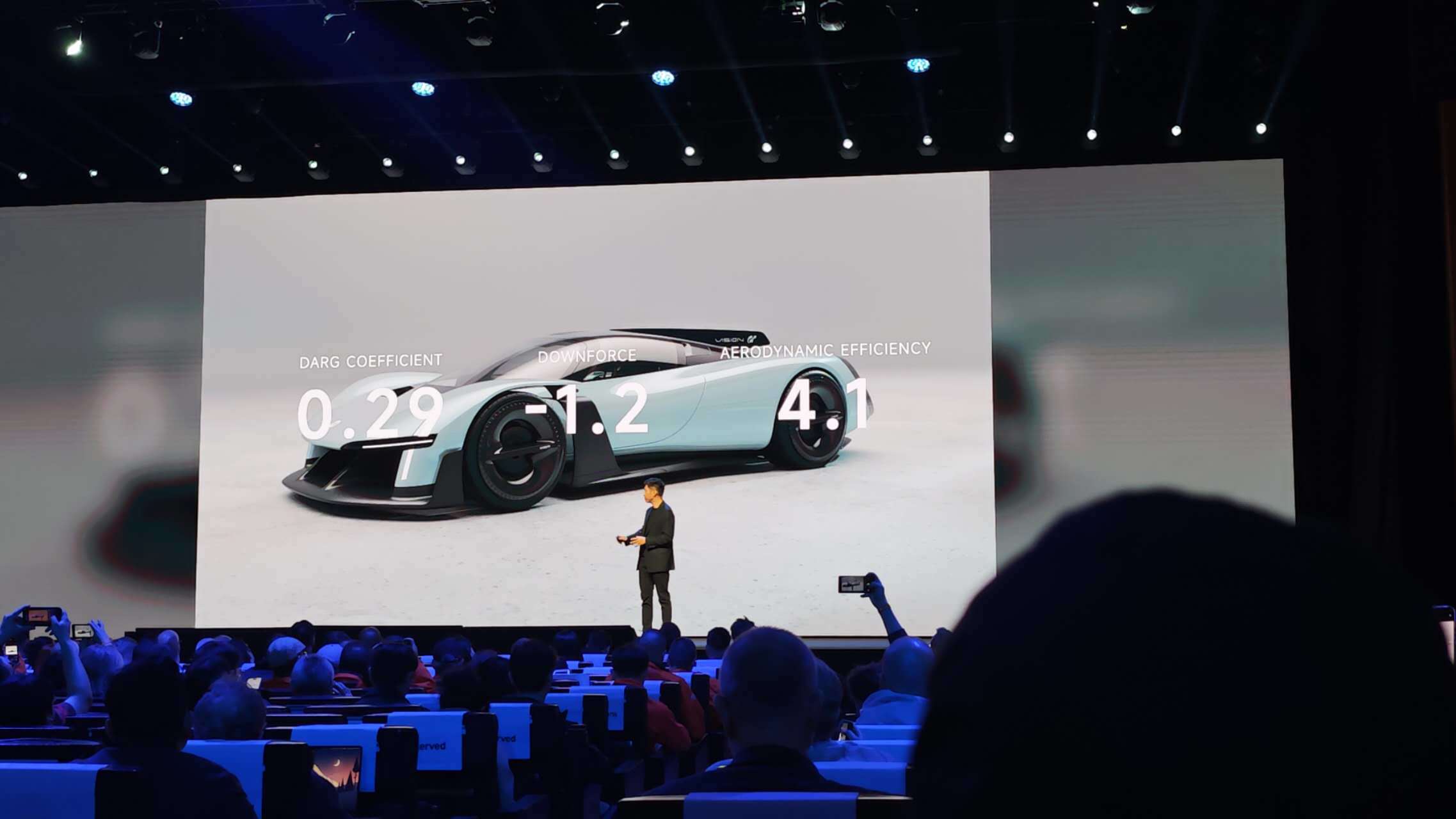 发布会最后,小米汽车设计总监李田原上台,向大家介绍了小米超级跑车Vison Gran Tourisimo,改车采用极致的空气动力学设计,车辆乘员舱部分被设计为一个浮动的泪滴,底部是巨大的空气动力学风道。车尾采用巨大的环形灯带设计,整车造型极为科幻。据悉该车将于3月2日至3月5日在巴塞罗那世界移动大会上实车展出。