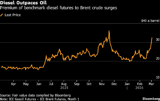 受伊朗冲突冲击供应,燃油价格涨幅超过原油