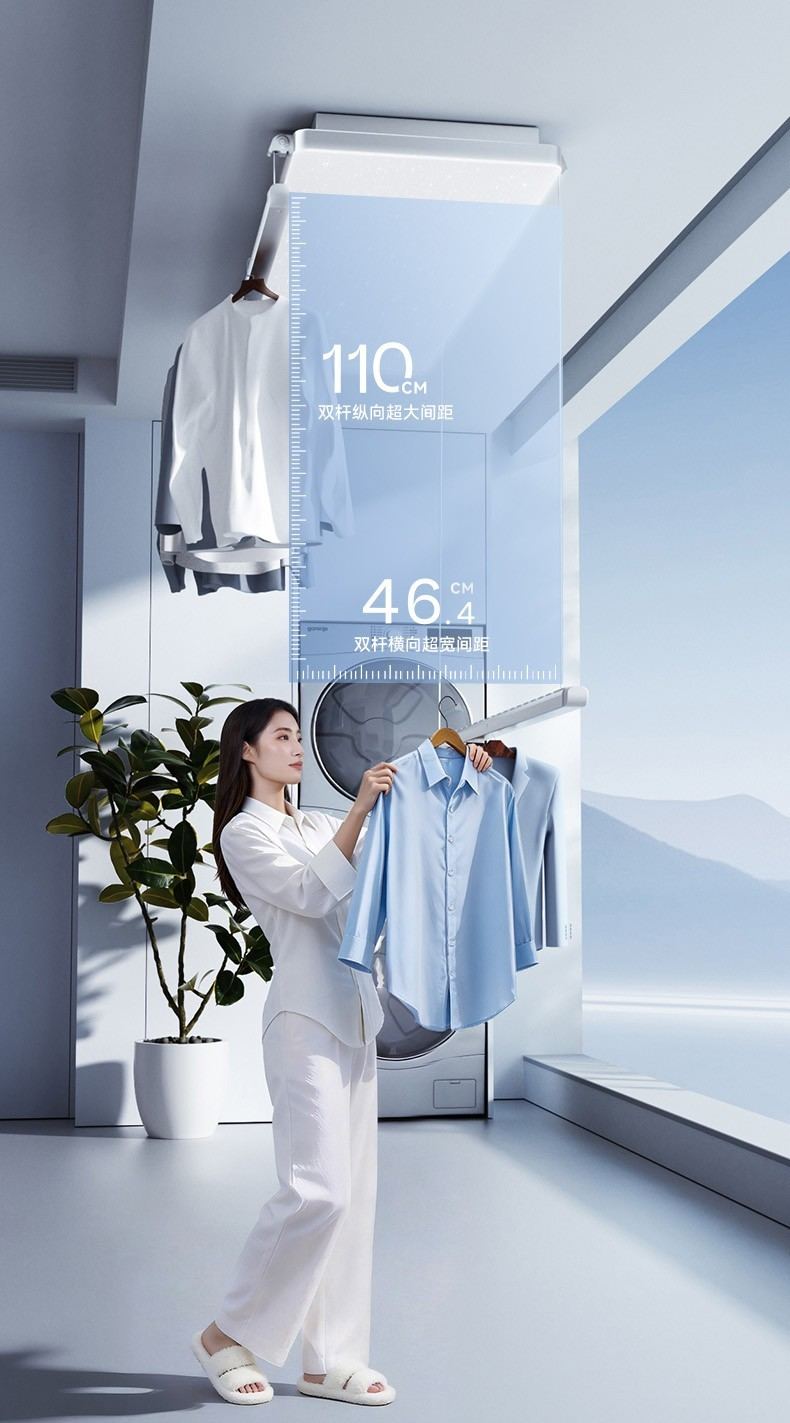 空间,因此被重新定义。超长晾杆创造出错落有致的呼吸感,让阳光与风自由穿行,终结衣物拥挤的烦闷,不仅可适配新家装修,还能适配房屋旧改,多种场景随心装。