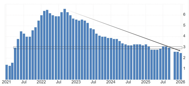 美国2月未季调核心CPI年的预期值为2.5%,与前值持平。历史数据看,2.5%的核心通胀率,是2021年4月份以来的最低水平。2022年9月份以未美国的核心通胀率一直处于下降趋势。按照目前的下降速度估算,美国的核心CPI数据将很快跌破2%的温和通胀标准。