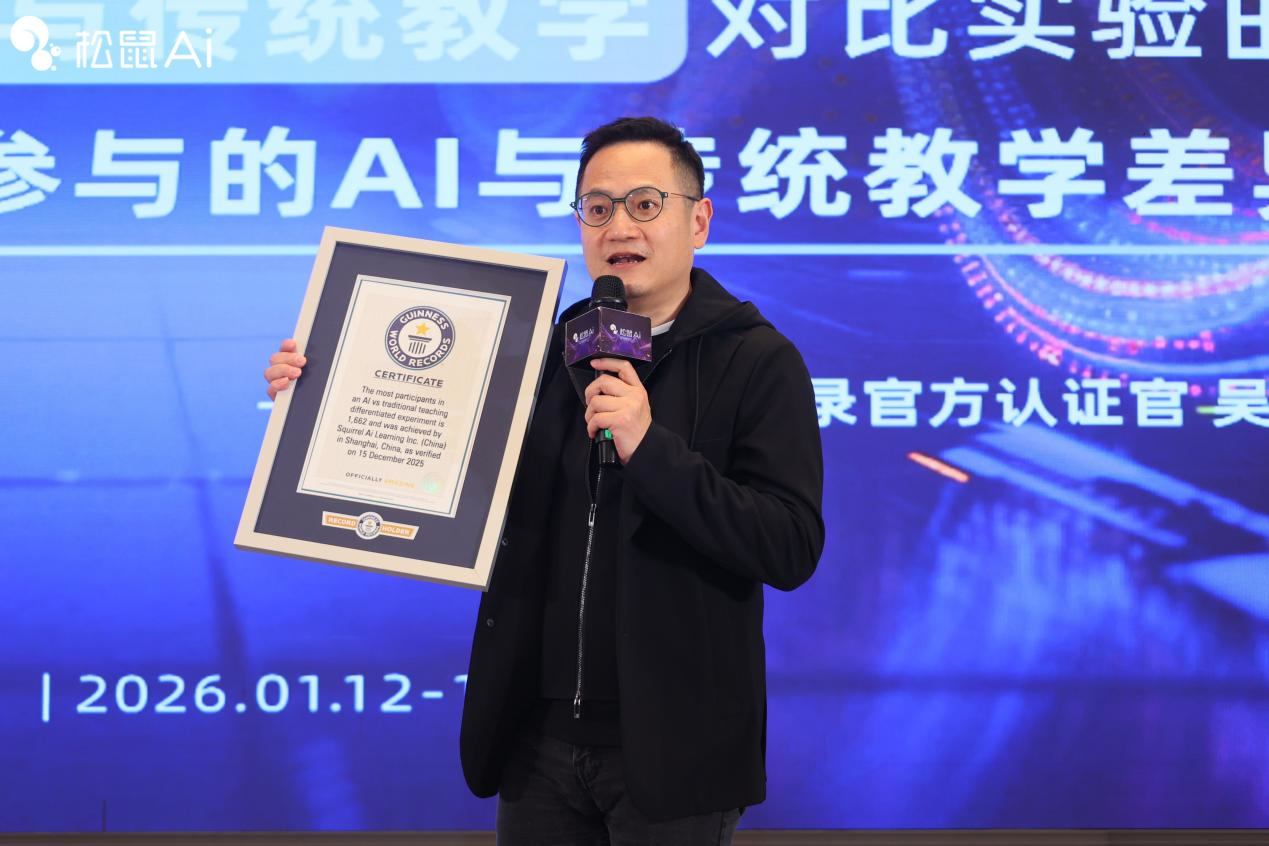 而松鼠Ai智能老师CEO周伟则聚焦技术内核,强调技术是增长的核心底气。松鼠Ai智能老师人机对战实验中,相同时间提分效果超传统教学5倍。并以覆盖1662名学生的大规模对比实验,创下“最多人参与的AI与传统教学差异化实验”吉尼斯世界纪录。