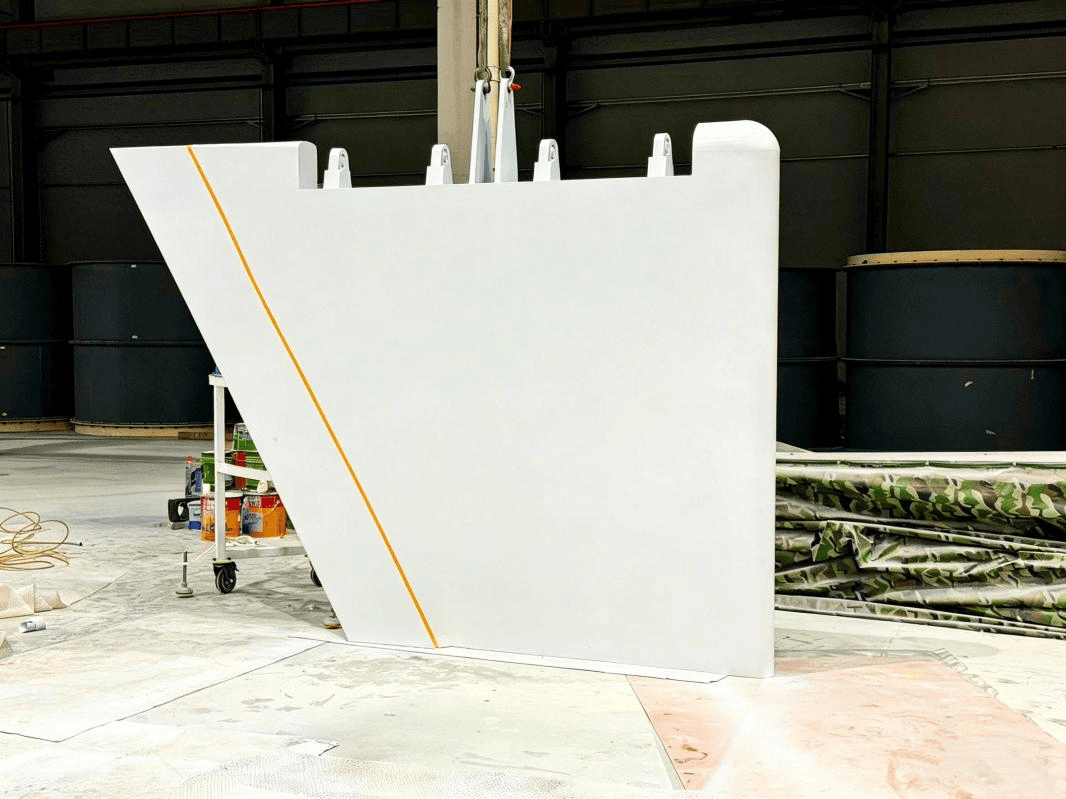 据披露,千亿航天的“玄鸟-R”全尺寸试验箭,目前已经生产完毕。从公开的资料来看,这枚火箭的外形和常见的圆柱体有所不同,它多了专门为ADHL技术设计的四个翼面。这些独特的设计,正是气动减速水平着陆方案的物理载体。