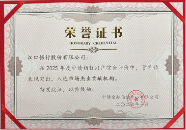 与此同时,汉口银行还获得了中债金融估值中心2025 年度 “市场杰出贡献机构” 称号,成为全国获此殊荣的四家城商行之一。中债金融估值中心作为中央结算公司全资子公司,在相关部委和监管机构指导下为中国金融市场提供定价等核心服务,此次授予汉口银行该奖项,旨在表彰其在债券指数创设与运用方面的积极探索,以及为银行间债券市场基础设施建设作出的积极贡献。