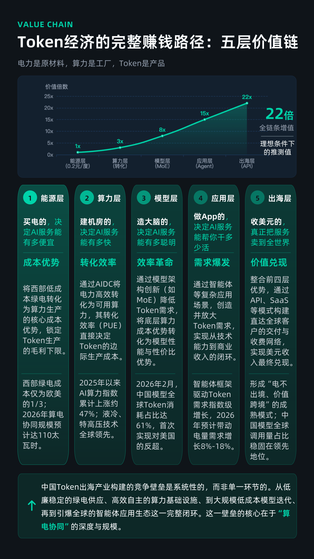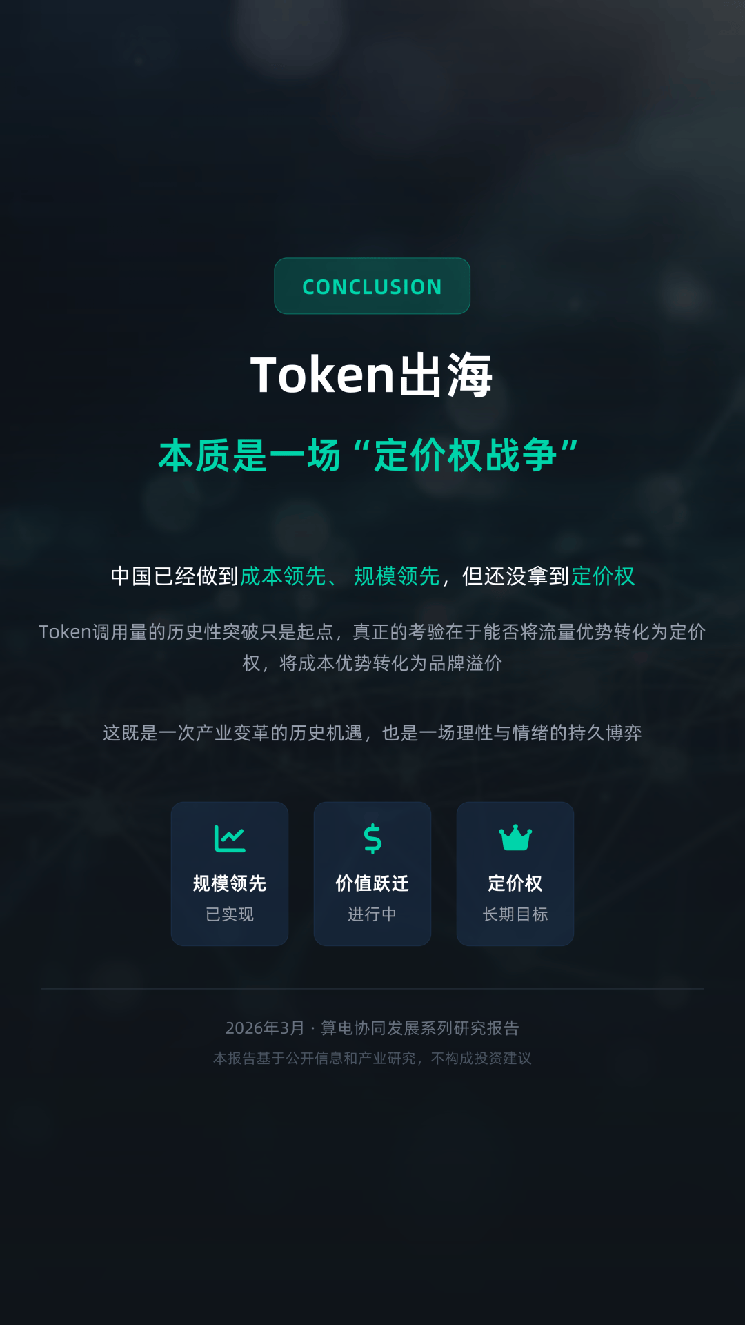 站在2026年的时间关口,Token出海可能成为中国数字经济对外输出的重要新形态,其本质是一场围绕“算力定价权”的全球竞争。当前,中国已在成本与规模上取得领先,但能否进一步实现品牌溢价与定价能力的提升,仍将决定这一轮“算电协同”产业红利的最终成色。这既是一次类似“制造业出海”的历史级机会,也是一场需要高度理性判断的长期博弈。