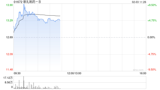 歌礼制药-B早盘涨超7% 拟折让约4%配股净筹约8.353亿港元