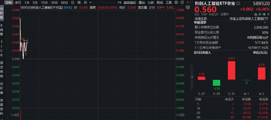 算力再迎政策利好!超8000万资金积极布局国产AI,华宝基金科创人工智能ETF(589520)场内飘红