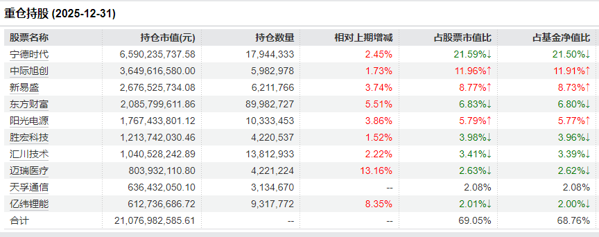 根据最新季报,创业板50ETF(159949)十大重仓股早盘表现分化。截止午盘,宁德时代跌1.04%,中际旭创跌1.06%,新易盛跌4.13%,东方财富涨0.27%,阳光电源跌0.17%,胜宏科技跌1.85%,汇川技术跌0.24%,迈瑞医疗涨0.49%,天孚通信涨9.14%,亿纬锂能跌0.54%。