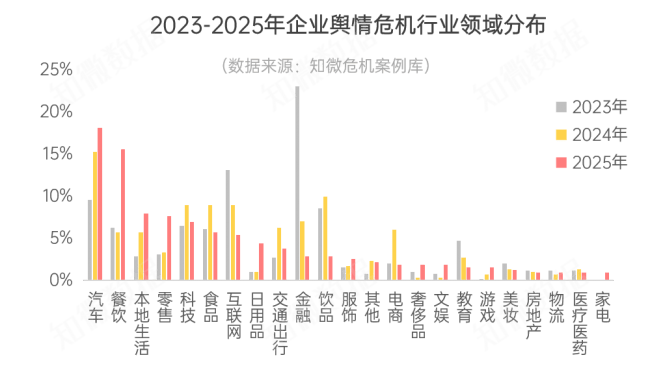 报告指出,2025年企业舆情危机呈平稳收敛但压力重构态势,危机周期性规律打破,全时段风险常态化。危机类型从产品硬缺陷向营销、高层形象、战略等品牌软短板蔓延;危机领域完成“脱虚向实”的迁移,汽车、餐饮、本地生活、零售、日用品五大实体经济领域成舆情核心区;爆料格局多中心化演变,小红书、抖音成为危机发酵双引擎,私域风险外溢显著。