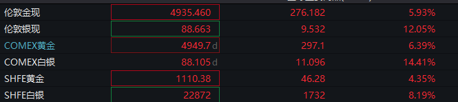 2月3日,国际金银价格迎来大幅反弹。截至发稿,现货黄金涨近6%,站上4930美元/盎司,现货白银涨超12%,站上88美元/盎司。