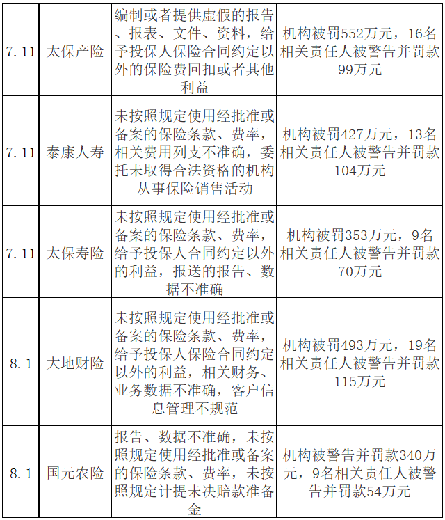 天安财险,16人被罚款253万元,5人撤销任职资格,4人终身禁业,4人10年禁业,2人5年禁业;