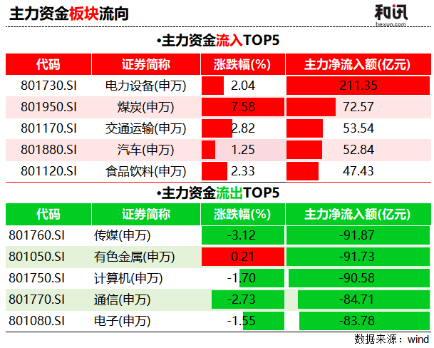 “电”力十足、“煤”飞色舞!两大板块吸金合计近300亿