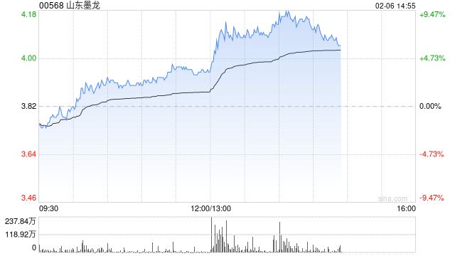 山东墨龙AH股午后齐升 H股一度涨超9%
