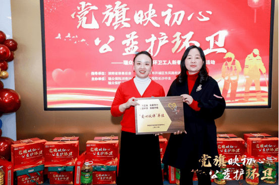 本次活动的亮点之一,是“爱心驿站”的正式揭牌。在湖南省慈善总会及相关政府部门、瑞众保险多方领导的共同见证下,设立于瑞众保险职场内的“爱心驿站”宣布启用。该驿站将全年面向环卫工人开放,免费提供饮水、热饭、歇脚、充电、应急药品等贴心服务,将一次性的节日慰问升华为常态化的温暖守护。环卫工人所在的环卫中心与街道现场授予瑞众保险“爱心伙伴单位”与“爱心共建单位”荣誉牌匾,这份荣誉既是认可更是责任,瑞众保险将持续以实际行动深化公益共建,为一线环卫工人筑牢暖心保障。