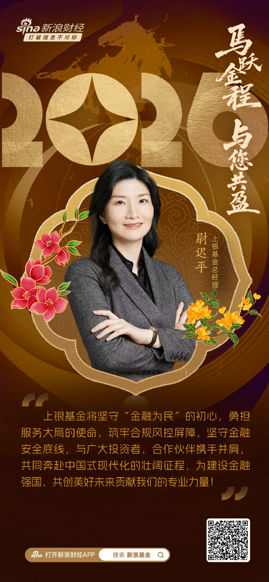 上银基金总经理尉迟平送来新春祝福。她表示,上银基金将坚守“金融为民”的初心,勇担服务大局的使命,筑牢合规风控屏障,坚守金融安全底线,与广大投资者、合作伙伴携手并肩,共同奔赴中国式现代化的壮阔征程,为建设金融强国、共创美好未来贡献我们的专业力量!祝愿大家身体健康,新春快乐,阖家幸福!