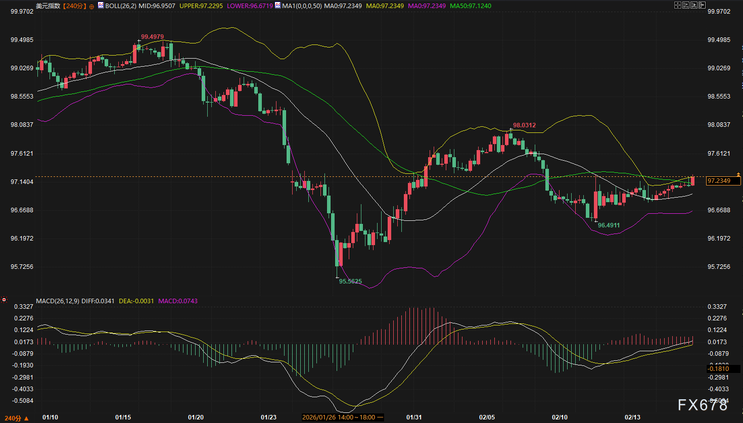 汇通财经APP讯――周二(2月17日),美元指数显现企稳迹象,当前在97.23附近震荡,较1月底的低点95.56有所回升。此前美元经历了连续四个月的下滑,累计跌幅约6.7%,一度触及四年低位。近期美元逐步摆脱下行压力,市场关注点正重新转向美国经济增长前景与政策环境的变化。
