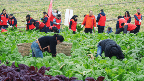 青菜头是涪陵农业的核心产业之一,也是当地农户的重要收入来源。此次活动恰逢青菜头集中采收期,涪陵榨菜集团搭建起全民参与的助农平台,吸引数千名市民游客走进田间地头。在村民的现场指导下,参与者们学习青菜头砍收技巧,与农户并肩协作,共同完成了约8亩地的青菜头收砍工作,切实缓解了农户集中采收的劳动力压力。