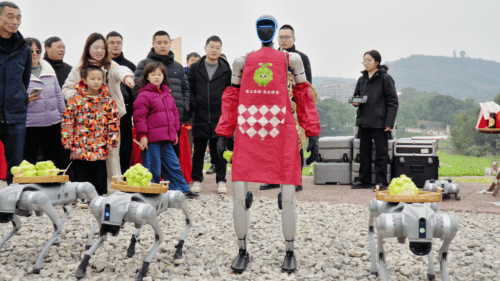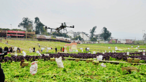本次活动的一大亮点,是科技与传统农耕的创意碰撞,为青菜头丰收季注入了别样活力。在二渡村的田间地头,机器人、机器狗穿梭其间,与绿油油的青菜头展开趣味互动,憨态可掬的模样吸引了不少参与者驻足打卡;农用无人机化身“空中运菜能手”,在田间灵活运送采收的青菜头,高效便捷的作业方式让大家直观感受到科技为农业生产带来的新变化。