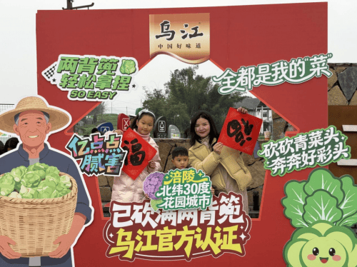 活动现场,涪陵榨菜集团精心设计的“乌江丰收打卡点”和主题合影框成为热门打卡地,游客们纷纷驻足留影,让乌江品牌与丰收喜悦深度绑定;乡村集市特设的“乌江产品展示区”集中亮相新品与经典产品,方便消费者近距离品尝、选购,直观感受涪陵榨菜的独特风味。