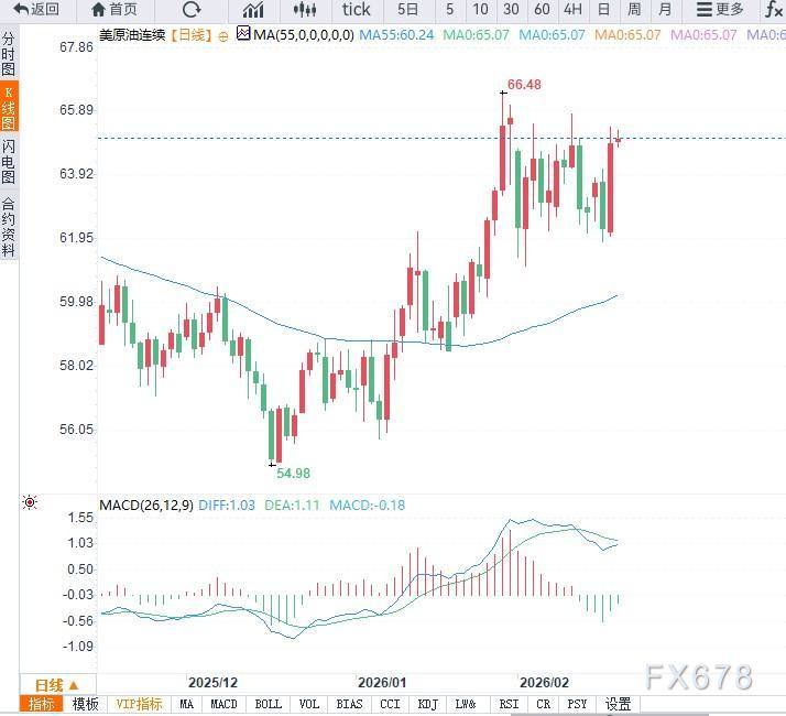 从日线图来看,美原油(WTI)此前在60美元附近构筑阶段性底部结构,随后展开强劲反弹。