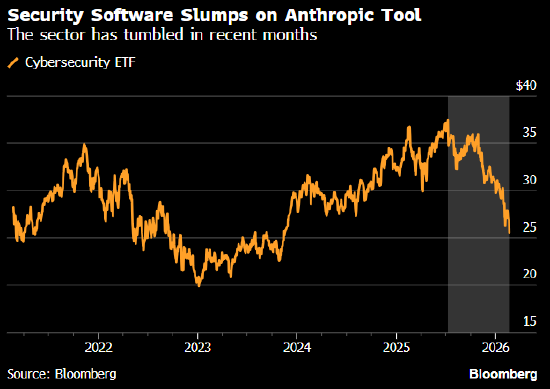 网络安全软件类股周五大跌,此前Anthropic PBC在其Claude AI模型中引入一项新的安全功能。