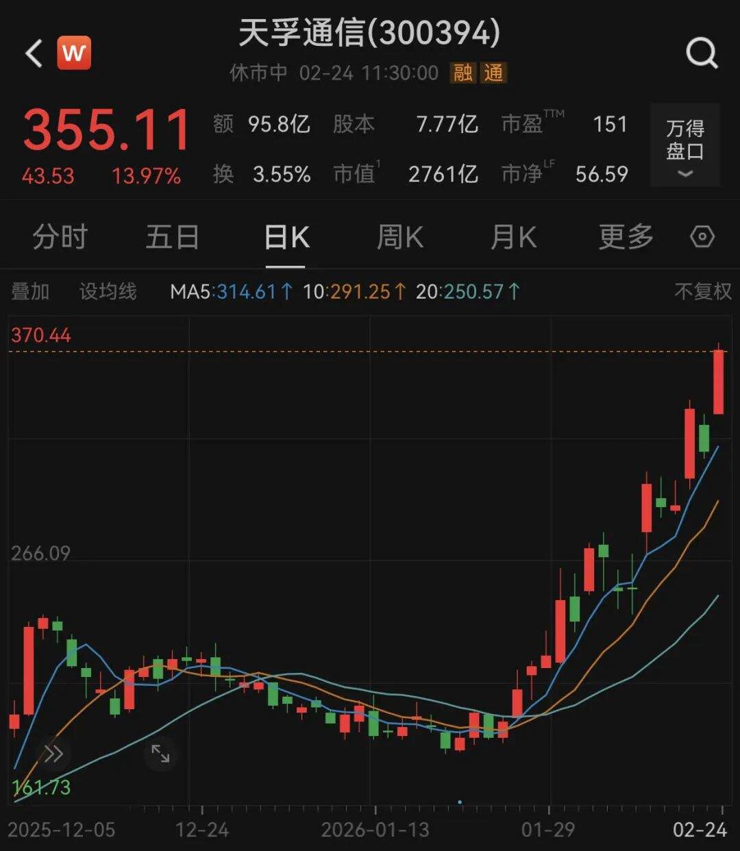 通信板块盘中涨幅一度接近5%,天孚通信大涨近14%,长飞光纤涨停,股价均创历史新高;润泽科技涨超15%,德科立涨近14%,通鼎互联(002491)、长江通信(600345)、华脉科技(603042)、亨通光电(600487)等亦涨停。