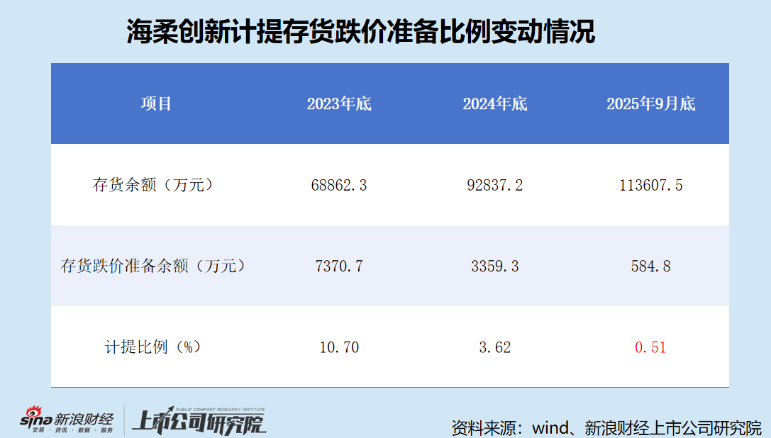 有意思的是,随着存货余额增长,海柔创新计提的存货跌价准备余额反而快速减少,截至2025年9月底仅为584.8万元,较2023年底骤降92.07%,计提比例仅为0.5%。同期,库龄超过2年的存货余额达1815万元,明显高于存货跌价准备余额,计提是否充分有待商榷。