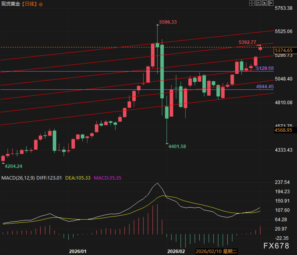 (现货黄金日线图,来源:易汇通)北京时间8:16,现货黄金现报5367美元/盎司。