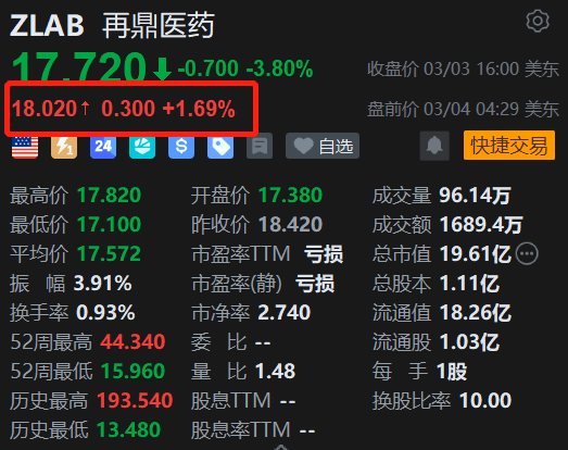 美股异动|再鼎医药盘前涨约2% H股收涨4% 绩后持续获机构唱好