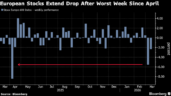欧洲主要股指斯托克600指数上周创下自去年4月以来的最大单周跌幅。中东冲突已进入第10天,伊朗任命已故阿亚图拉・阿里・哈梅内伊之子为新任最高领袖,且军事打击仍在持续,冲突暂无缓和迹象。