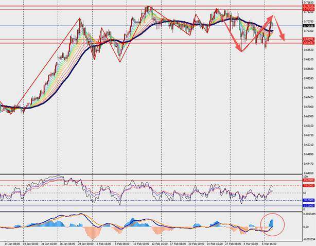 第一阻力位:0.7100 第一支撑位:0.7010