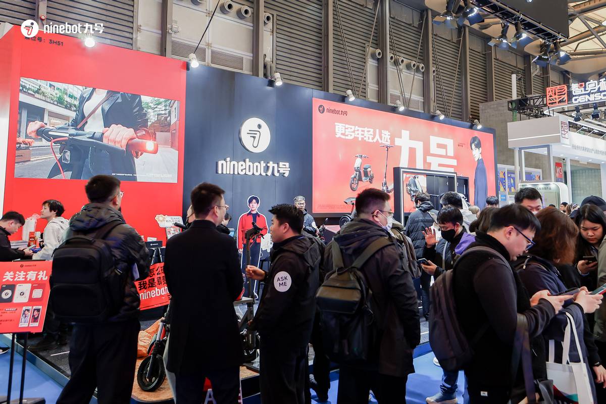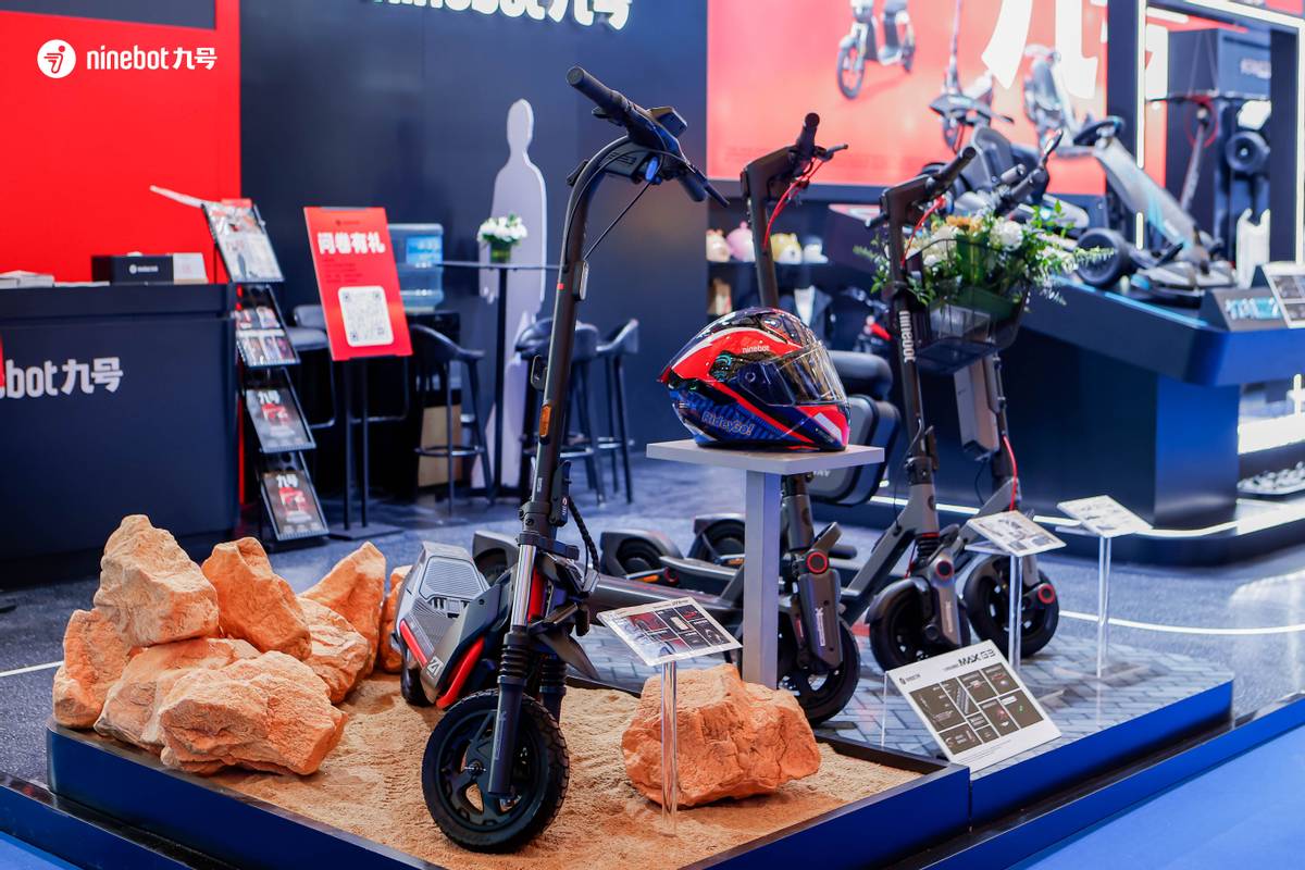 此外,九号还展出了E300P mk2、M5 200等智能电动摩托车,以及Fz3新国标电动自行车,为不同年龄层、不同使用场景的用户提供多样化出行选择。