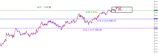 短线分水岭159.30区域,短线偏震荡,大方向依旧多头(突破159.74后多)