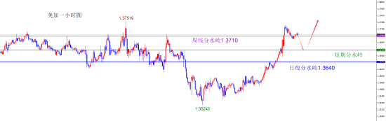 关键分水岭1.3670区域,短线依托1.3670区域看支撑上涨
