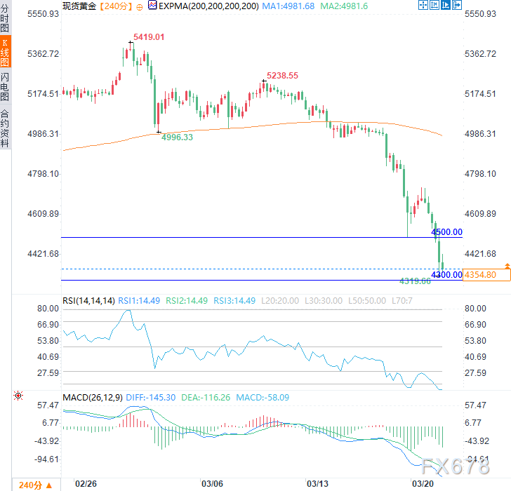 技术面看空信号强烈,4300美元成关键防线