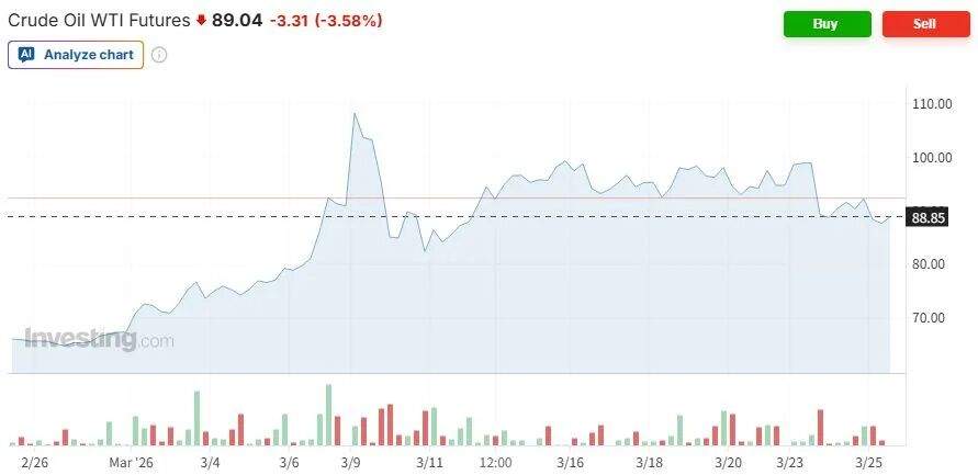 过去一个月以来美油走势(图片来源:英为财情)