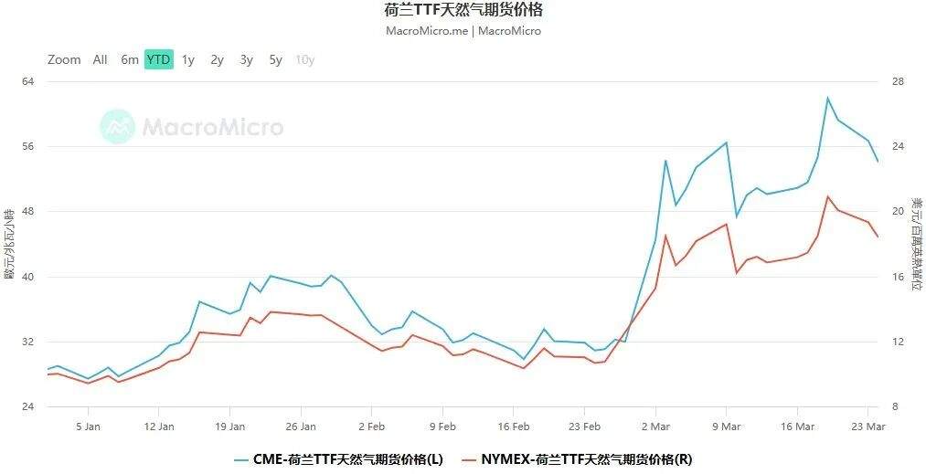 过去一个月以来欧洲TTF天然气期货价格走势(图片来源:MacroMicro)