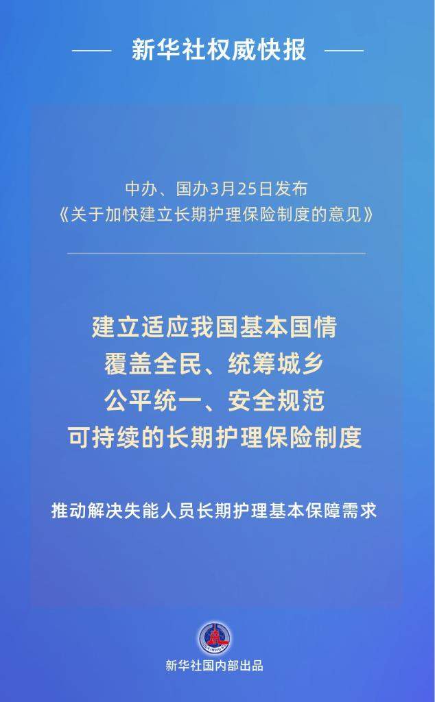3月25日晚间,中共中央办公厅、国务院办公厅印发《关于加快建立长期护理保险制度的意见》(下称《意见》),要求建立适应我国基本国情,覆盖全民、统筹城乡、公平统一、安全规范、可持续的长期护理保险制度(下称“长护险制度”),不断增强人民群众的获得感、幸福感、安全感。
