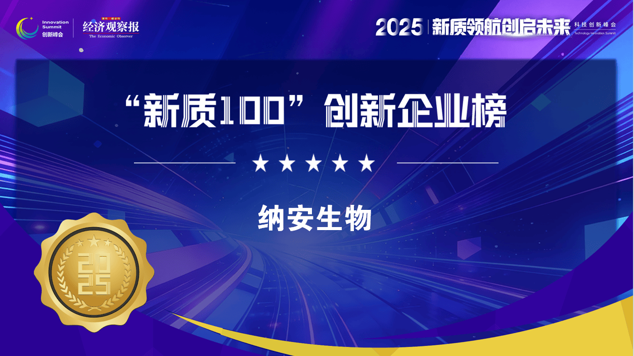 2026年1月30日,在《经济观察报》主办的“新质领航 创启未来”2025科技创新峰会上,“新质100创新企业榜”正式发布。山西纳安生物科技股份有限公司(简称“纳安生物”)凭借其开创性的“ADC+RDC诊疗一体化”创新模式、体系化的研发平台能力及对区域产业升级的带动价值,成功入选该榜单,与君实生物、百利天恒、丹诺医药等多家知名创新药企共同获此殊荣。