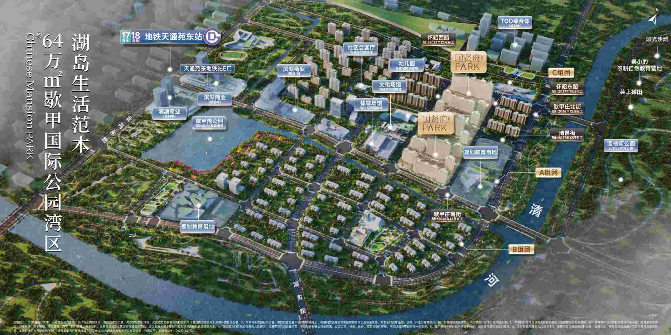歇甲板块依据《昌平区北七家镇南部组团CP02-0704-0024~0078地块规划综合实施方案》,以“完整土地+统一规划+配套先行”为开发逻辑,全维配套与住宅建设同步推进、稳步兑现。特邀国际顶尖规划团队AECOM执笔,以约64万方湾区蓝图为基底,串联双河生态廊道与全域公园体系,打造生态、宜居、活力的滨水住区。